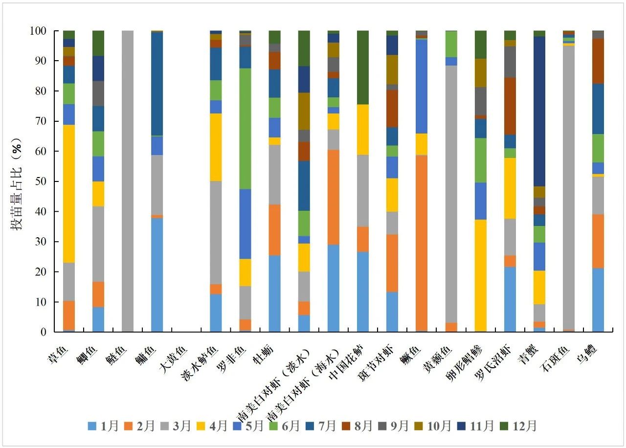 表1 2024年广东省监测水产品投苗量(按品种分月)