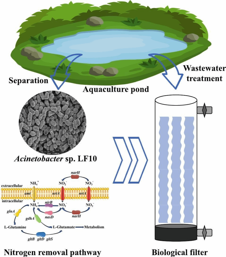 近日,中国水产科学研究院淡水池塘养殖生态环境调控创新团队在养殖尾水处理方面取得新进展,相关研究论文“Optimization of aquaculture wastewater treatment systems: based on the isolation of the strain Acinetobacter sp. LF10”发表在《Bioresource Technology》(JCR一区,IF=9.0),研究生李传龙为论文第一作者,龚望宝研究员为通讯作者。该研究得到国家重点研发计划项目(2023YFD2400501)、国家现代农业产业技术体系(CARS-45-21)以及中国水产科学研究院创新团队基本科研业务费(NO.2023TD62)等项目资助。